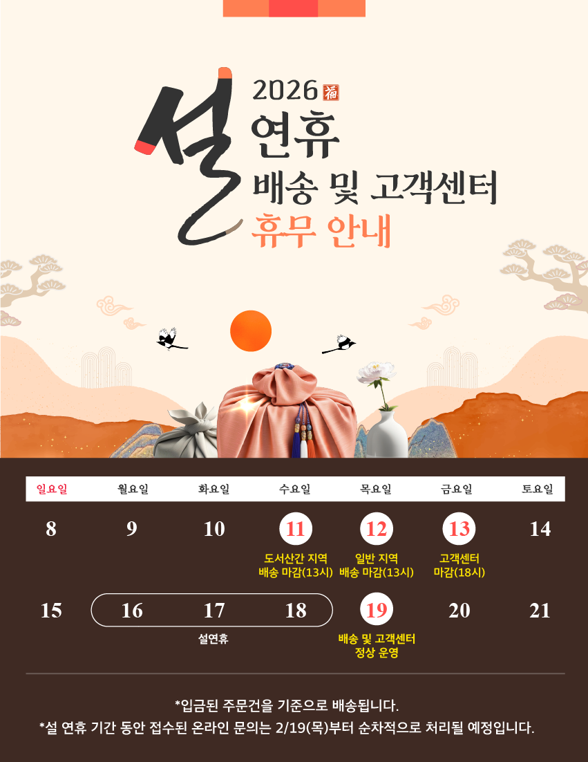 · 배송시작 단계부터 주문 수정이 불가능하며 단순 변심으로 인한 환불 요청 시 왕복 배송비가 부과됩니다.